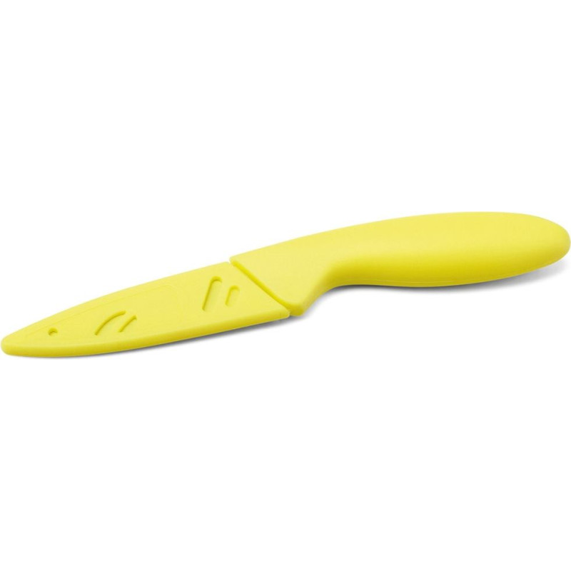Kitchen knife from stainless steel and plastic with antiadhesive surface and protective plastic case for blade. 190 x 20 x 25 mm, blade 80 mm