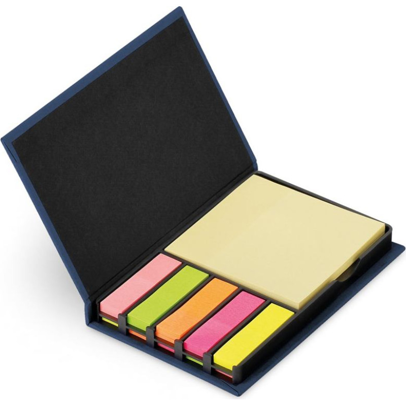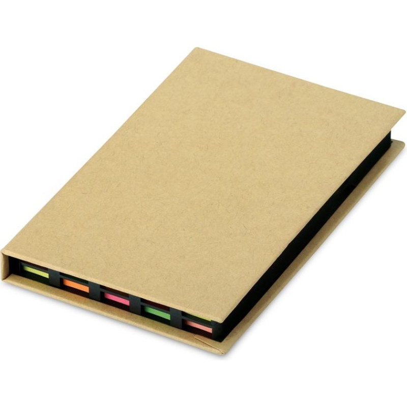 Sticky notes set with 12 sets (40 sheets each) and cardboard cover. The cover and post-its are made from FSC™ certified material and other controlled materials. 85 x 132 x 15 mm